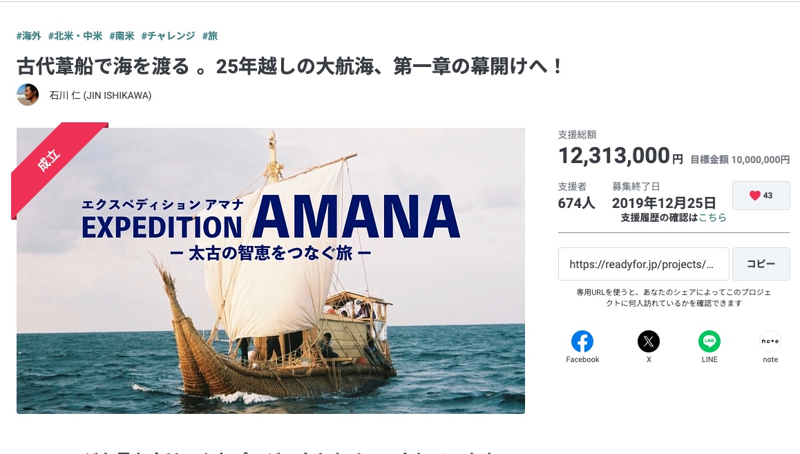 葦船航海プロジェクトAMANA号製作航海実現へのご協力お願いします。