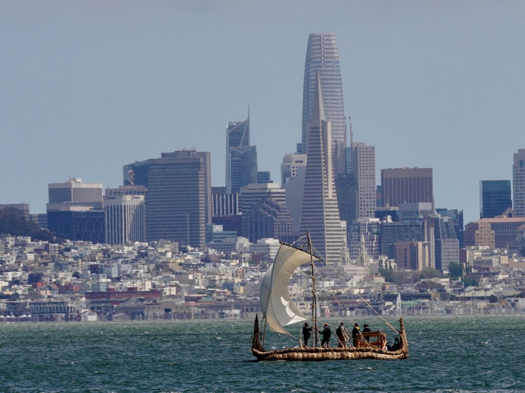 テスト航海および荷物積み込み後、カリフォルニア・サンフランシスコ湾を出航。太古と同じく風と海流に乗って4,000km離れたハワイ諸島を目指します。
